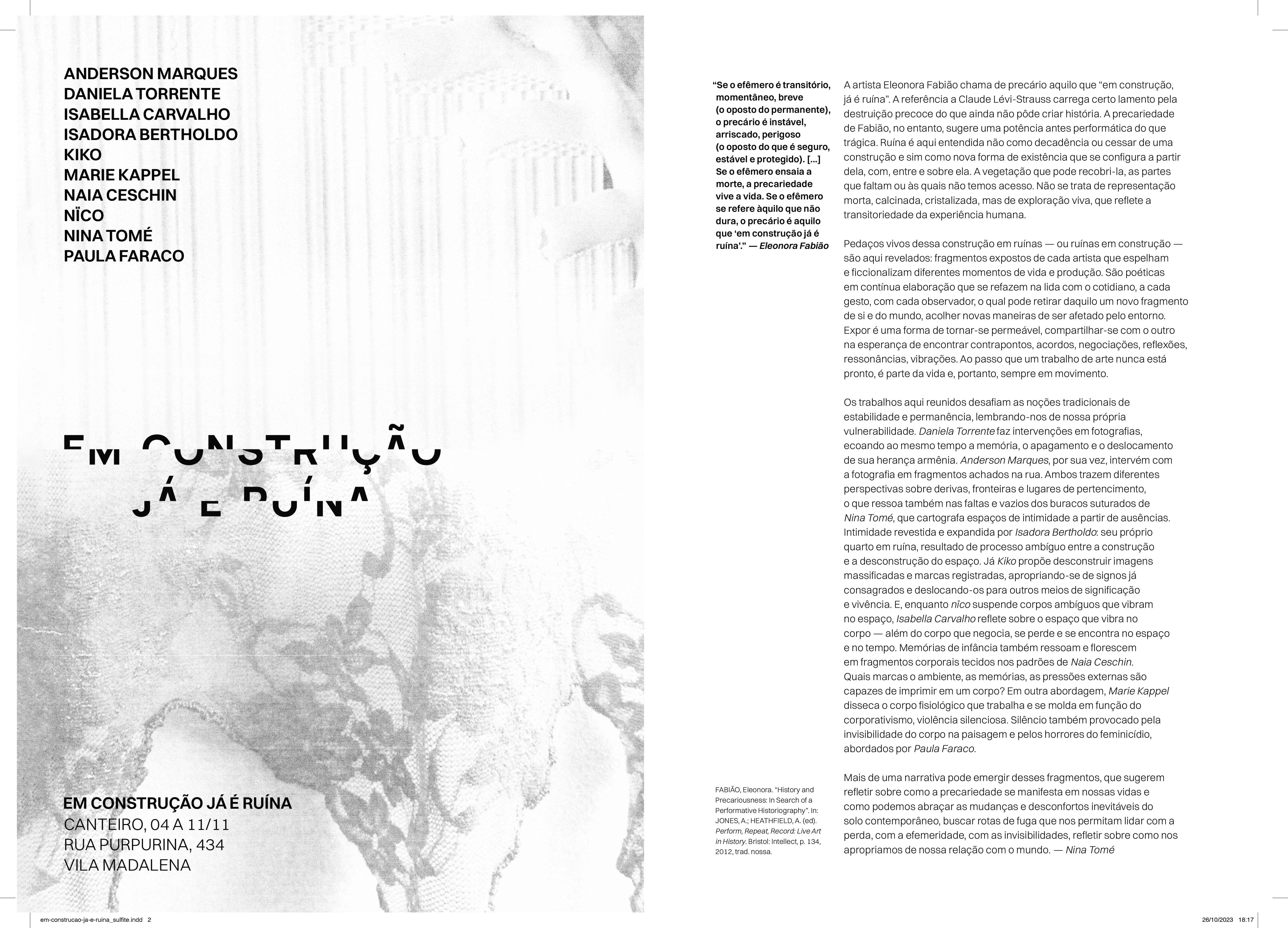 Artistas participantes: Anderson Marques, Daniela Torrente, Isabella Carvalho, Isadora Bertholdo, Kiko, Marie Kappel, Naia Ceschin, Nïco, Nina Tomé, Paula Faraco.